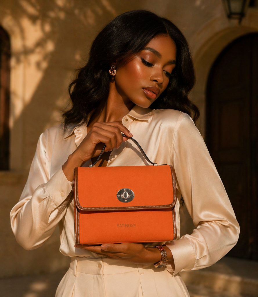 Le sac Lady Fatima Orange incarne l’audace élégante et la signature lumineuse de la maison SATINUXE. Avec sa teinte orange intense et chaleureuse, ce modèle révèle une personnalité forte, pensée pour celles qui osent se démarquer avec style et assurance.